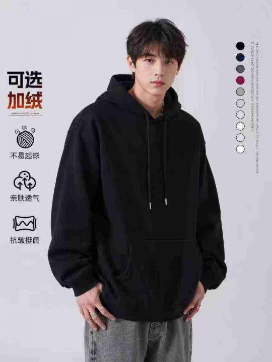 ☕️美式重磅纯色加绒连帽卫衣男女秋冬宽松加绒情侣纯色帽衫潮1200件全清13...