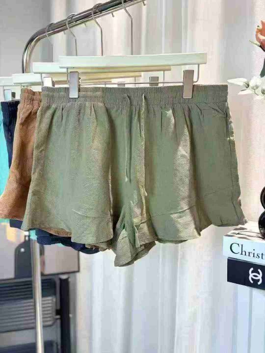 830条高品质棉麻荷叶边松紧腰抽绳设计短裤,宽松休闲大版型,单款多色,品质好!尺码S-XL,独立包装!福利秒杀价3.8