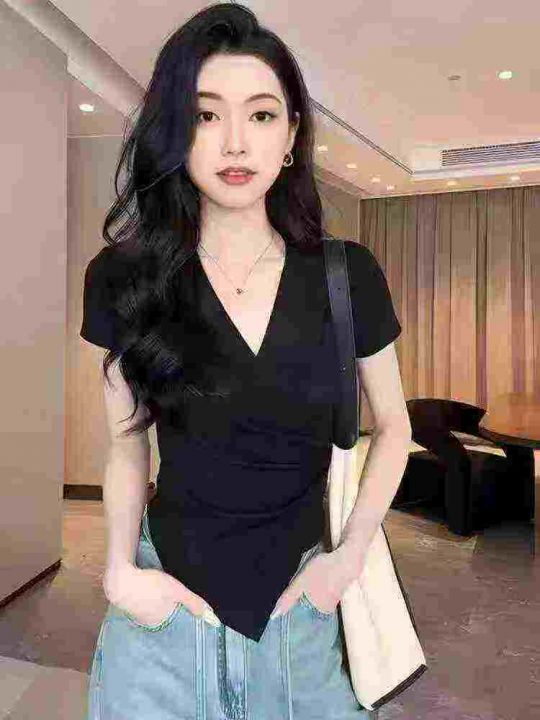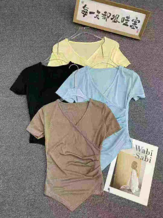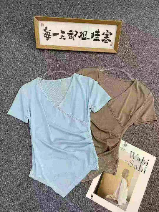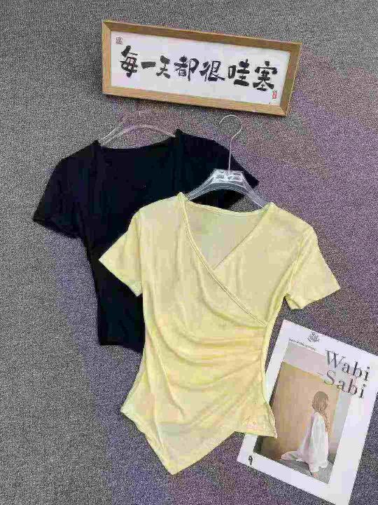 不规则冰丝短袖596件5.5面料柔软,高弹力,褶皱收腰,...