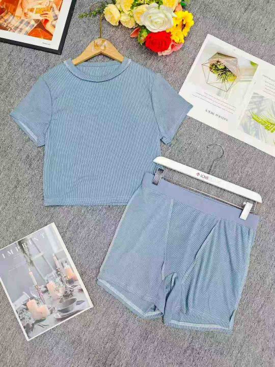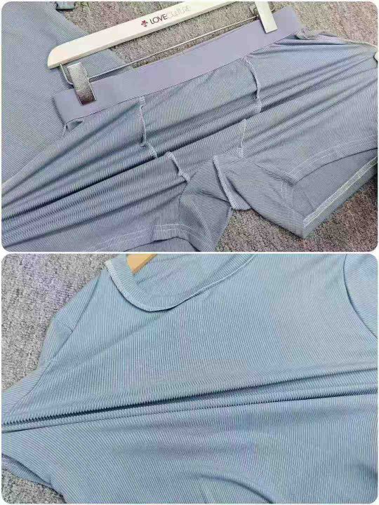 3.9清工厂回收262件外贸热卖设计感时尚套装雾霾蓝短袖...