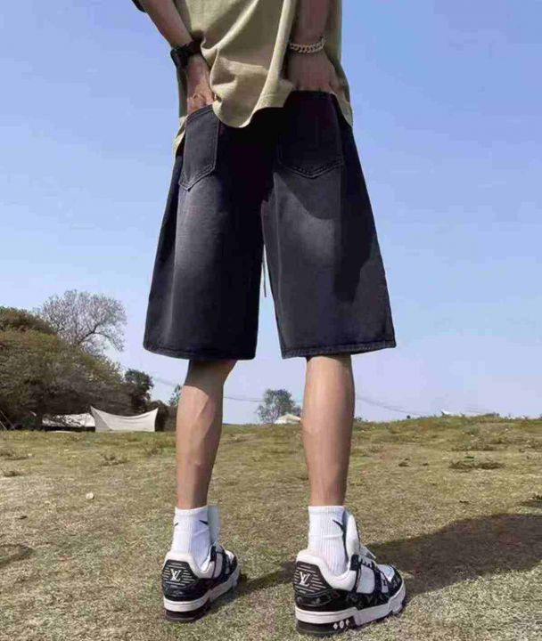 夏季新款高品质男士洗水棉松紧腰宽松阔腿牛仔短裤,独立包装带腰卡,码数S-...