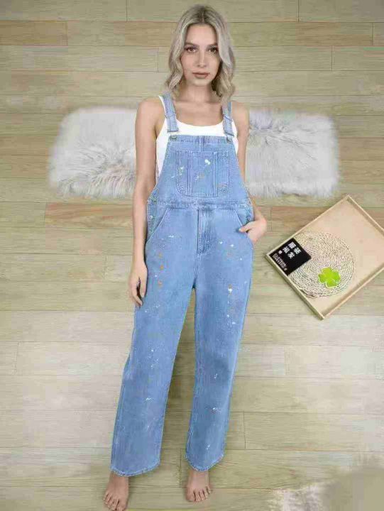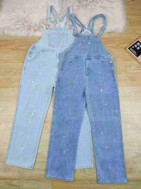 #Jeans wholesale外单女士扎染休闲牛仔背带裤,单款两...