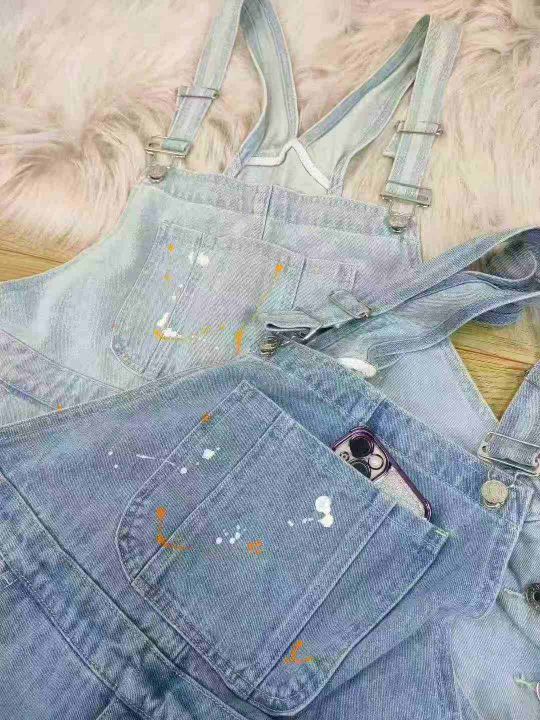 外单女士扎染休闲牛仔背带裤,单款两色,数量90条,尺寸S∽6XL码,批发价14.9秒杀