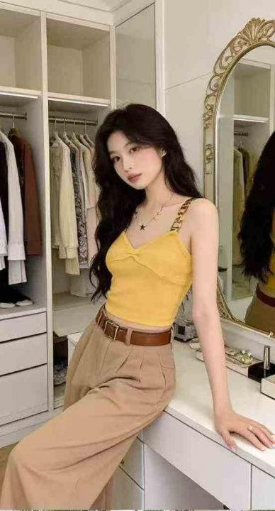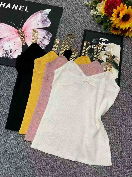 夏季新款纯欲性感设计感甜辣链条设计款针织吊带,独立...