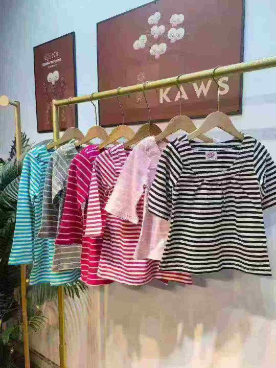 清仓处理2.9260件童装纯棉中袖条纹T 单款多色 后领包边包条,码数3-14码...