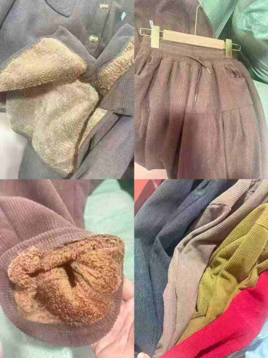 冬季翻领灯芯绒保暖套装女款现货,加绒加厚设计,宽松显瘦,面料为优质灯芯绒,保暖性佳。库存共200套,尺码M/L/XL,独立包装,全清单价14.8元/套,适合电商直播、实体铺货,性价比超高