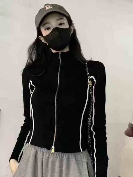 8.9清245件设计感双向拉链短款长袖上衣T恤外套女2025...
