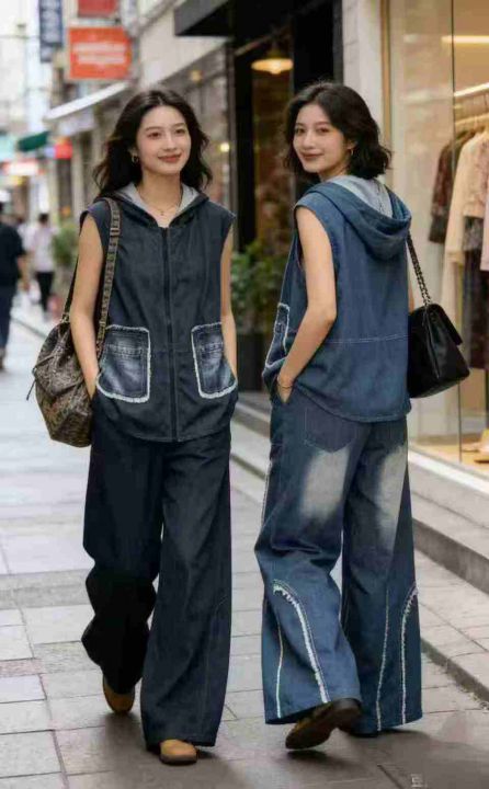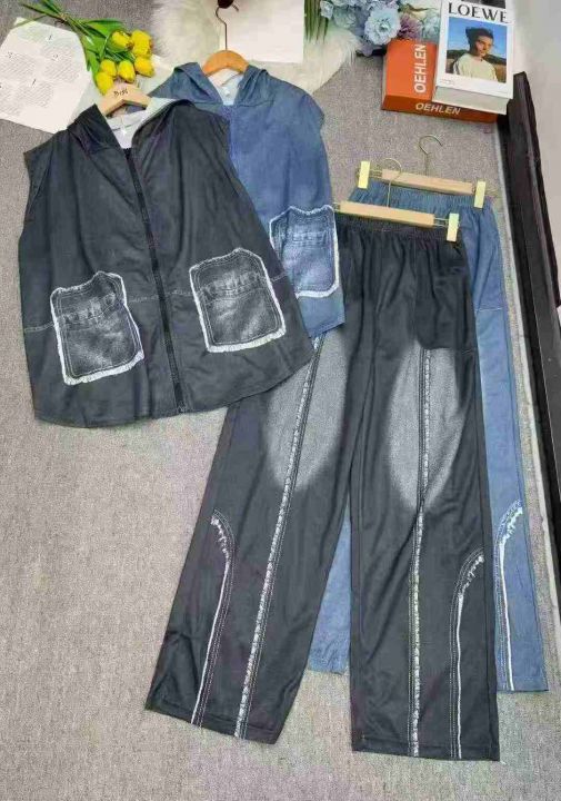 仿牛仔气质马甲套裤时尚马甲套连衣裙,独立包装,码数1-3码,数量147套 ,两整款,大货图四款为主,货号113#12