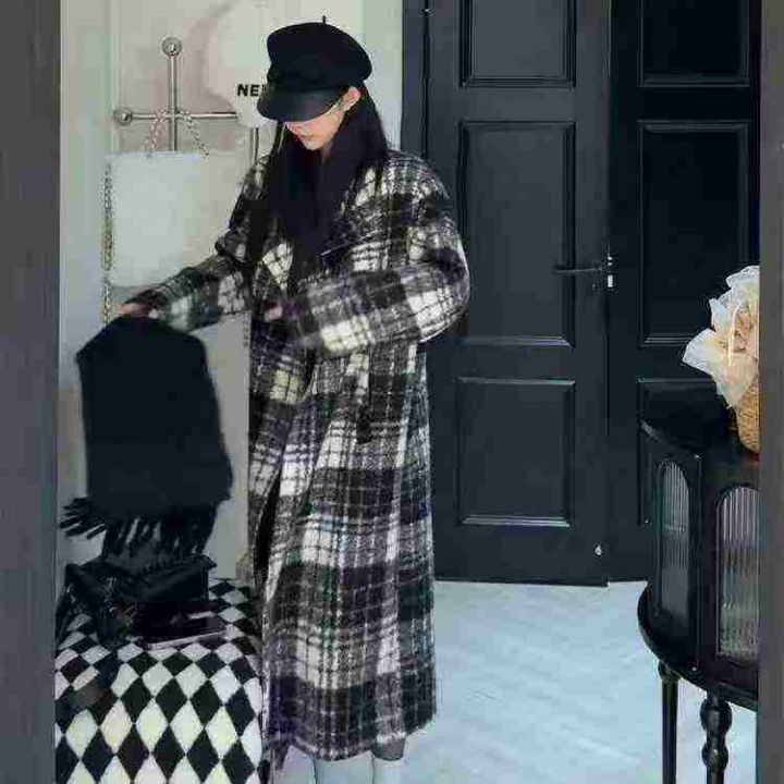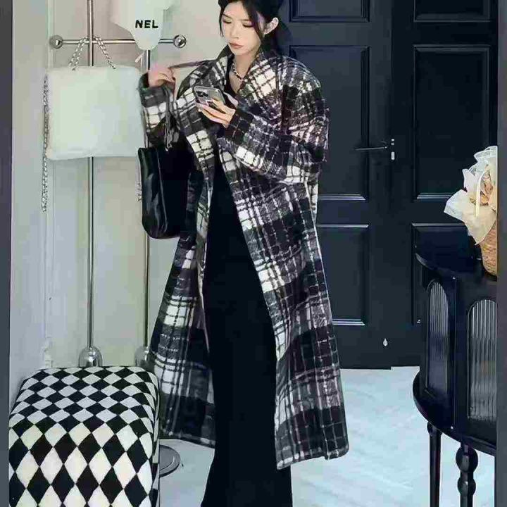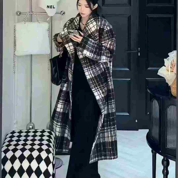 9.9清39件复古气质高级设计感黑白格纹中长款毛呢外套女秋冬款百搭呢子大衣 码数Xl-2XL 独立包装