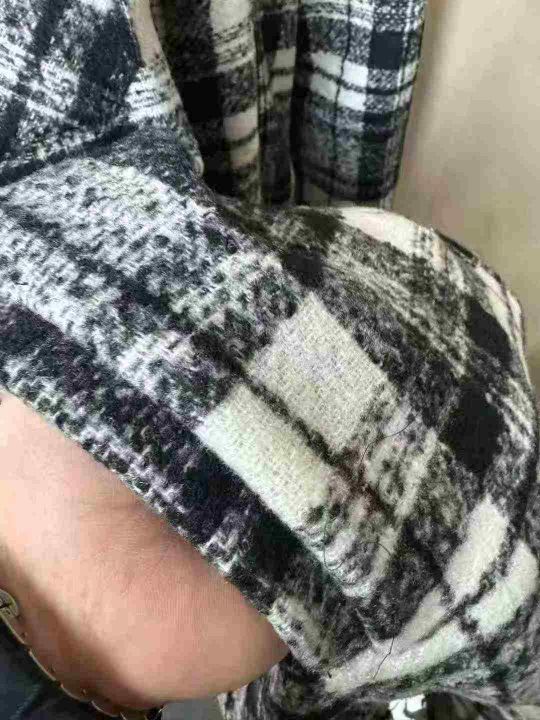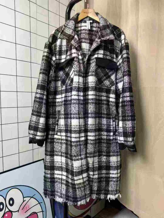 9.9清39件复古气质高级设计感黑白格纹中长款毛呢外套...