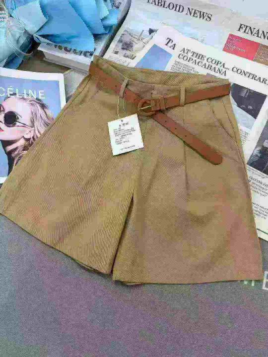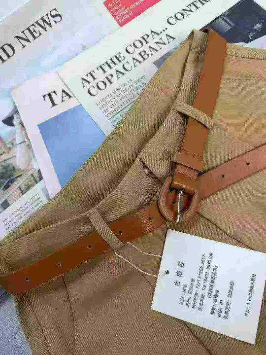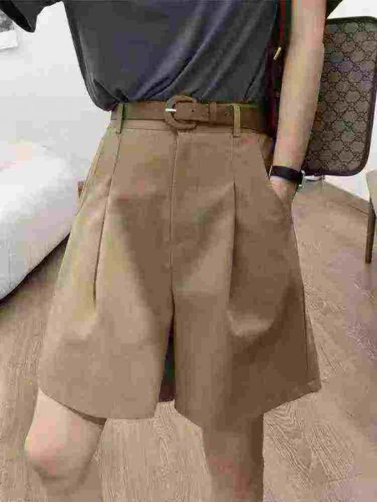 卡其色显瘦阔腿宽松休闲西装五分裤,单款2色,独立包...
