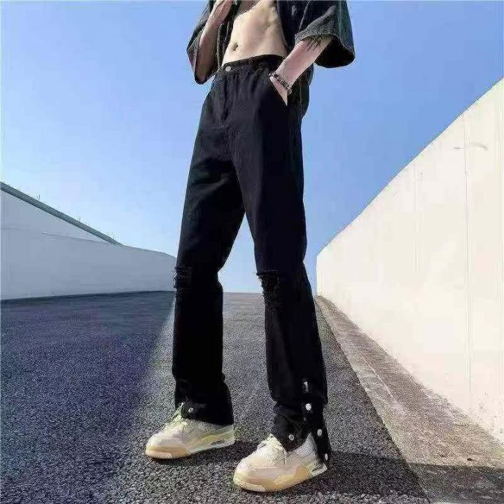 ☕️夏季黑色破洞牛仔裤男欧美高街拉链直筒裤潮牌阔腿拖地长裤155条全清10....