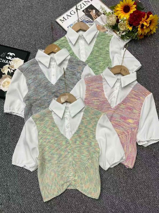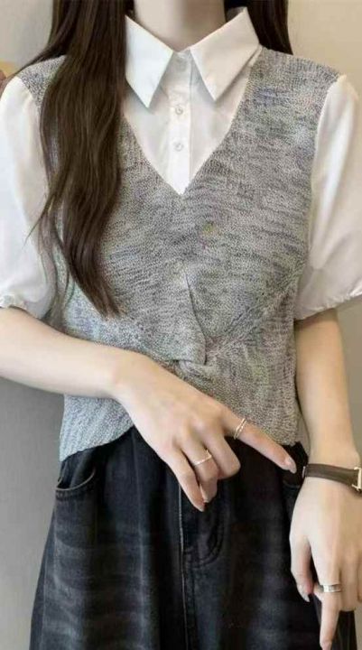 夏季新款设计感小众假两件拼接polo领法式泡泡短袖衬衫针织短袖T桖,独立包装,均码面料柔软舒适,2款多色,800件,全清6.9元超低价秒杀!分货加一!