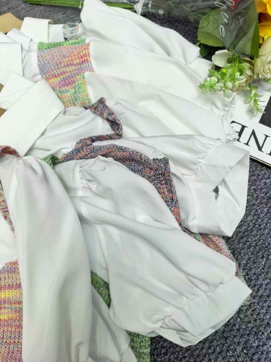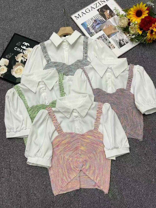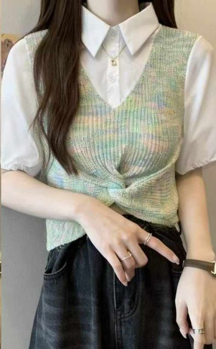 夏季新款设计感小众假两件拼接polo领法式泡泡短袖衬衫针织短袖T桖,独立包装,均码面料柔软舒适,2款多色,800件,全清6.9元超低价秒杀!分货加一!