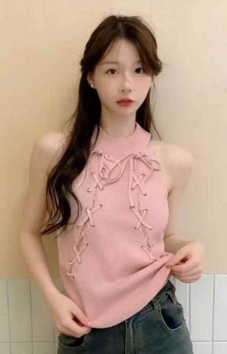 夏季新款纯欲性感设计感绑绳设计款针织吊带背心,独立...