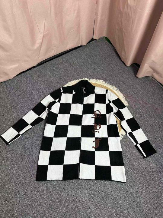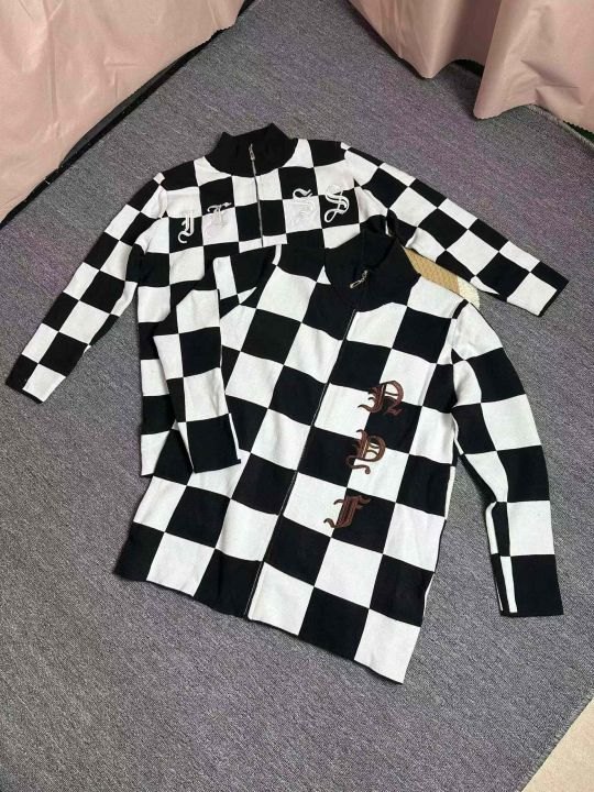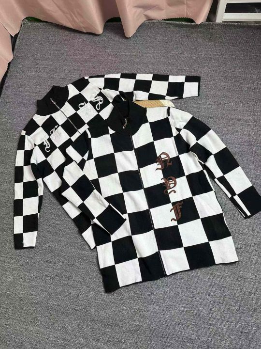 拉链针织衫外套女秋冬美式复古格子设计感小众宽松百搭开衫毛衣潮,独立包装,均码,106件,清8.8