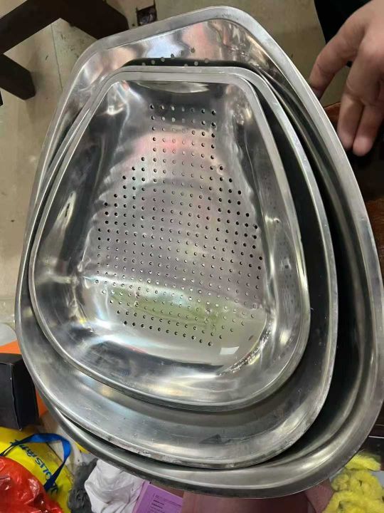 不锈钢簸箕,三个规格,4.5元一斤。合适5元—10元...
