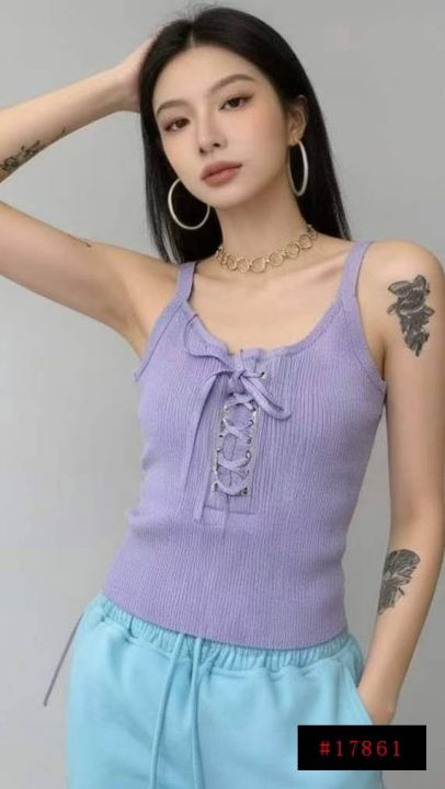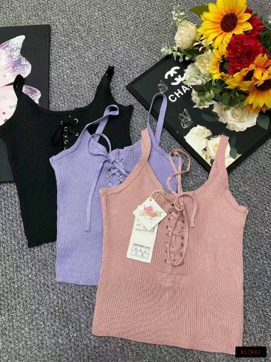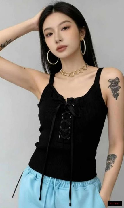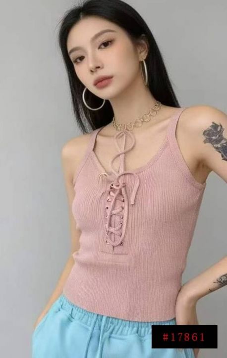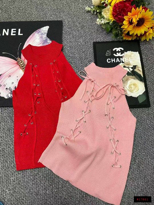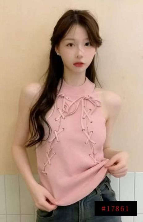 夏季新款纯欲性感设计感绑绳设计款针织吊带背心,独立包装,均码面料柔软舒适弹力大,100件左右,全清4.9元超低价秒杀!@_@