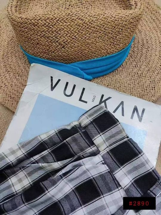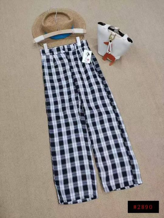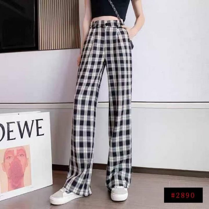[月亮]:小个子格子直筒阔腿休闲裤