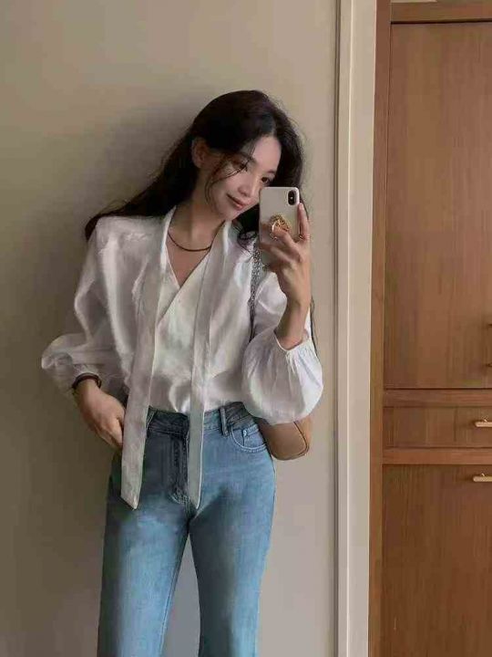 750件左右法式高级感洋气气质百搭长袖V领别致不规则绑带泡泡袖衬衫上衣,做工品质毋庸置疑,尺码S-XL,货品干净,独立包装!福利秒杀价6.9