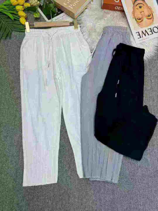全清价5.9热卖棉麻打褶裤脚休闲裤松紧腰宽松萝卜哈伦...