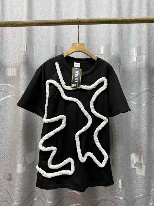 潮牌男女撞色毛带短袖夏季新款时尚百搭棉T恤,独立包装吊牌,100件左右,清仓价5.68