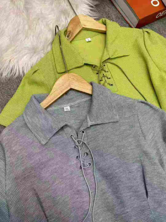 爆款秋季百搭休闲POLO领条纹宽松女新款慵懒风上衣,数量150多件,码数smlxl...