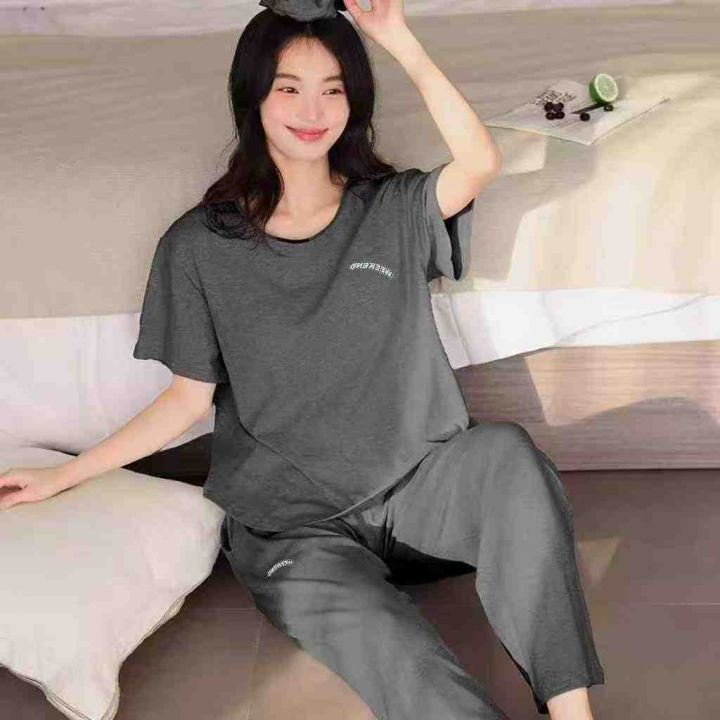 电商仓回收123套简约大气字母舒适灰色短袖休闲套装,码数S-2XL。面料柔软有弹性,有独立包装,分货➕1