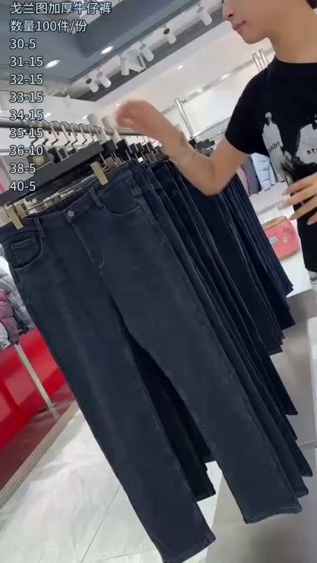 戈兰图加绒牛仔裤100条/份,面料手感非常舒适,上身无束缚感,年龄跨度大35...