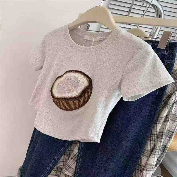 5.9清电商仓回收204件韩系时尚椰子贴布纯棉辣妹短袖T...