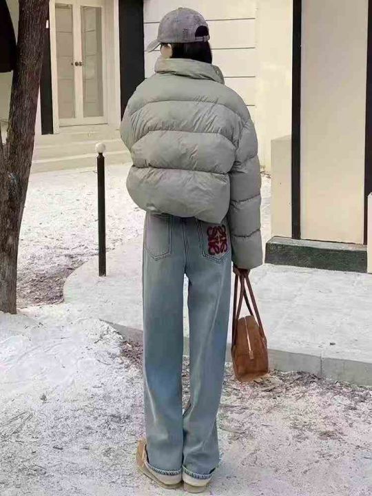冬季新款网红复古蓝刺绣设计款加绒加厚直筒阔腿牛仔裤...