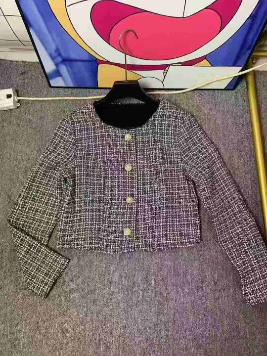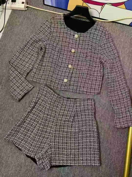 18.8清170套女装小香风外套短裤 两件套 复古圆领长袖格纹小香风粗花呢外套高腰短裤套装 码数XS- L 独立拉链包装