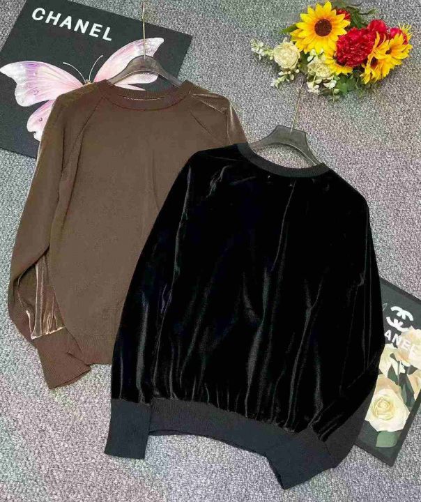 春秋新款轻熟女装宽松AB面针织拼金丝绒长袖上衣,独立包装,均码面料软糯舒适,200件,全清5.9元超低价秒杀!