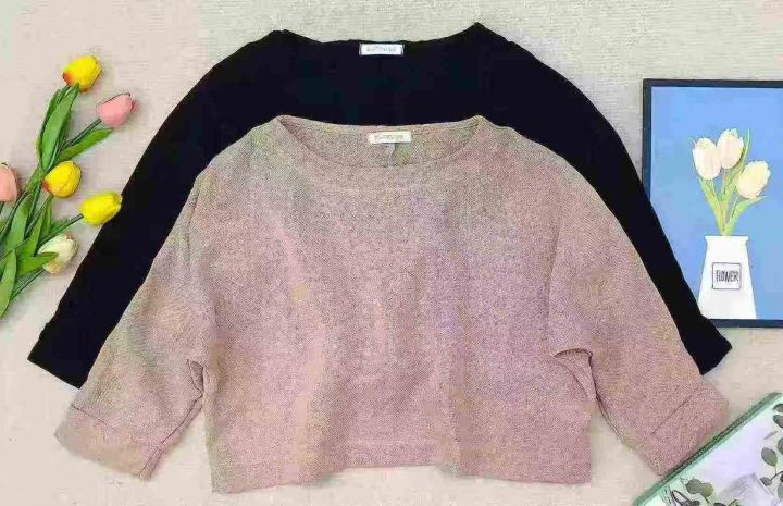 3.8元,韩版辣妹短款宽松蝙蝠中袖一字肩仿亚麻上衣,102件,M一L,独立包装,后领包条,全清3.8元,分货+0.5