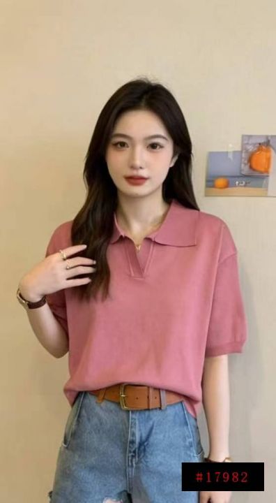 夏季薄款温柔风百搭翻领韩系宽松净版百搭短袖针织衫,独立包装,均码面料柔...