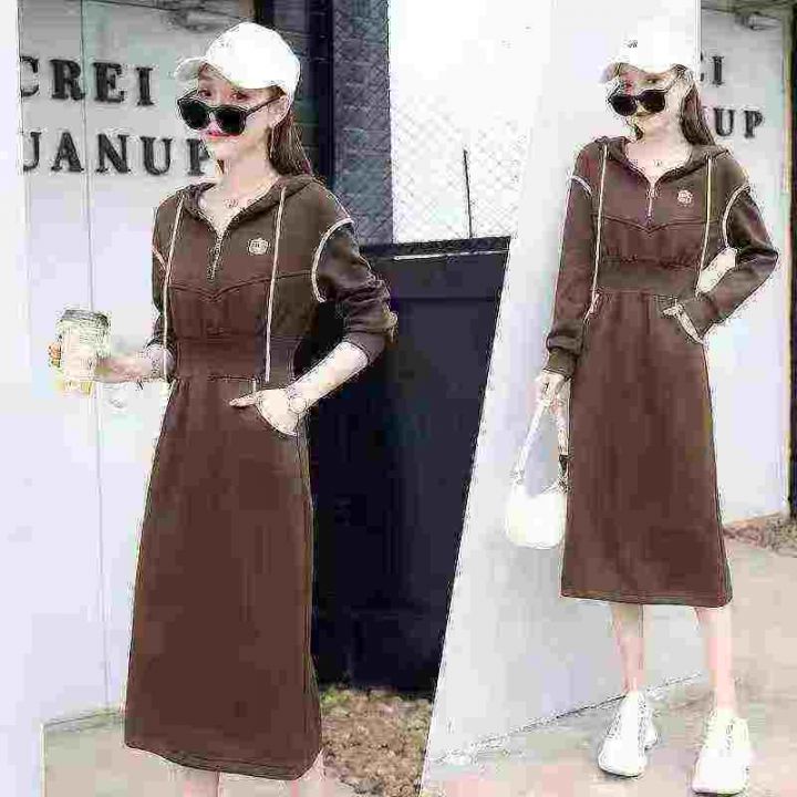 网红时尚拼接休闲流行设计感收腰显瘦显高卫衣连衣裙潮,独立包装,大货长袖多,码数2-6,数量129条,货号1114#20