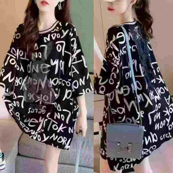 全清价6.5时尚烫钻短袖t恤女中长款夏韩版宽松ins潮露...
