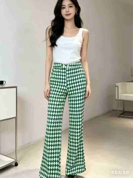 130条左右2026年新款棋盘格开叉阔腿裤女春夏秋时尚垂感拖地休闲裤微喇裤,...
