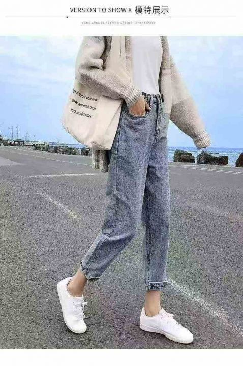 春秋新款宽松高腰显瘦萝卜牛仔老爹裤,独立包装带吊牌...