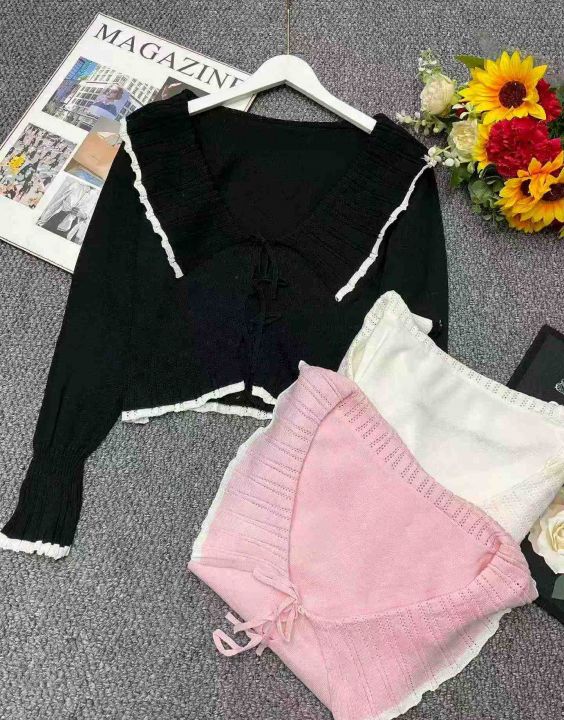 春秋新款时尚娃娃领绑绳设计款慵懒风宽松针织毛衣开衫,独立包装,均码面料柔软舒适,315件,全清6.9元超低价秒杀!分货加一!