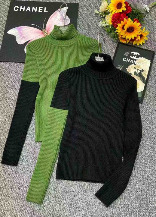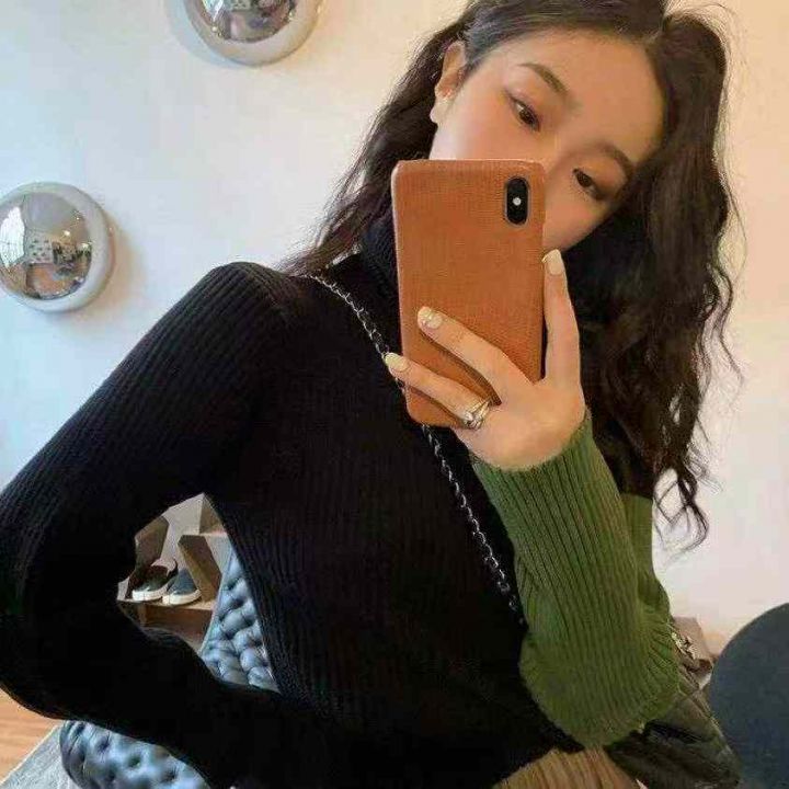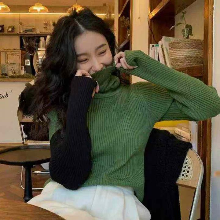 冬季新款韩系撞色高领坑条包芯纱套头毛衣,独立包装,...