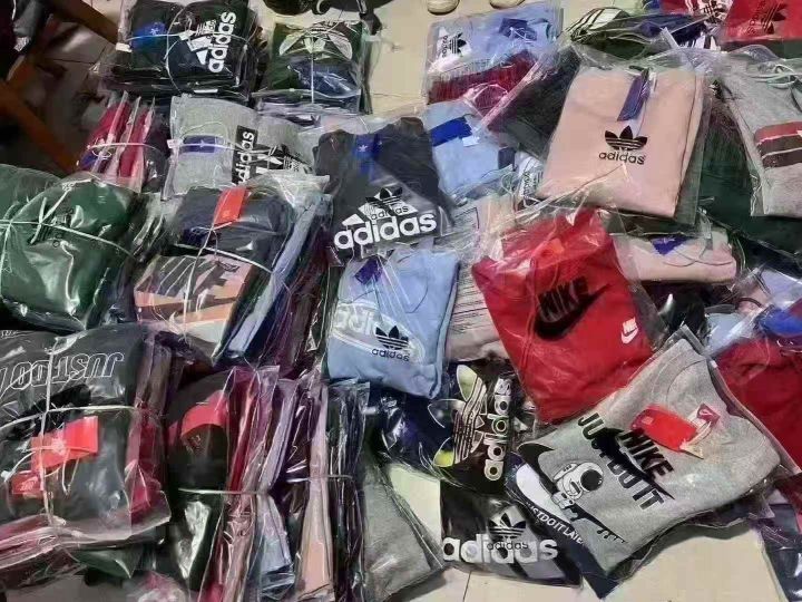 2025棉春季新款,华棉复合卫衣,帽衫占6圆领占4,男女同款,颜色非常好。三标花型特别多,颜色图案混搭配。一共700来件。100件一份 18带帽19一件