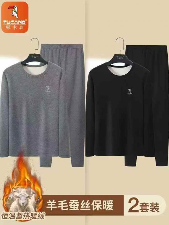 男士羊毛蚕丝德绒保暖套装加厚款精品好货200套一份23...