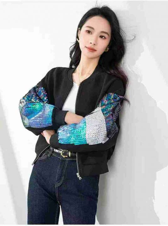 彩色绣亮片长袖女外套约150件。单黑色如图F均码,三标...