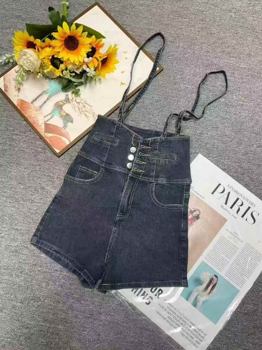 夏季新款靓妹女装弹力修身显瘦牛仔背带短裤,独立包装...