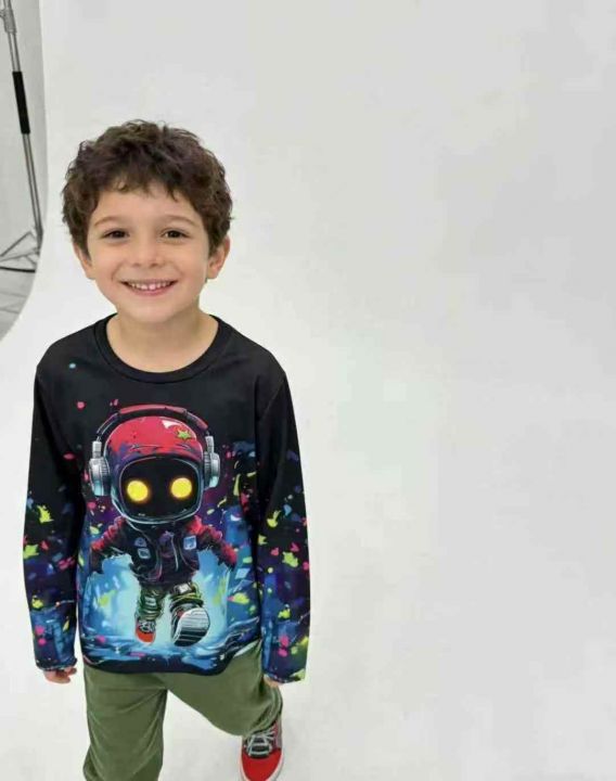 2.9清跨境外贸童壮印花长袖男女款T恤,大版宽松型后领包边 独立包装 码数12...