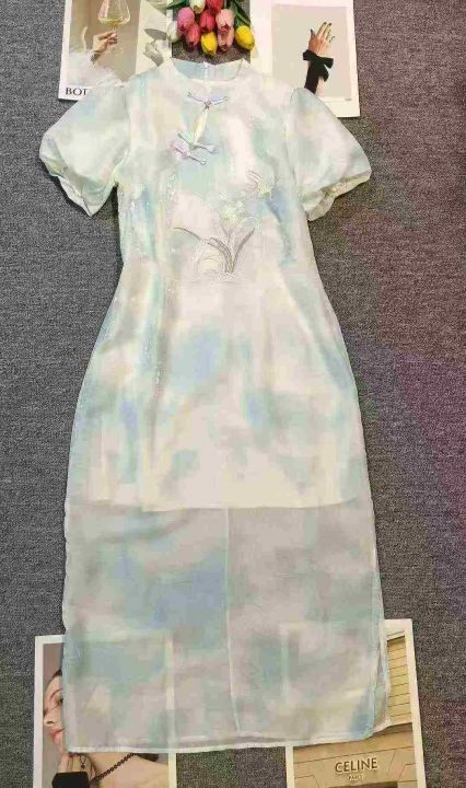 新中式国风刺绣收腰设计感盘扣连衣裙,[爱心]105件左右,码数S-L,穿80-130斤,万佳档口货,原包装️无瑕疵,[666]实体店品质,分货加一