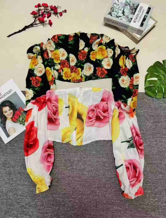 洋气花朵性感露肩一字领拉链短款开衫上衣,数量135件,码数S-2XL,整款两色,品质好,有独立包装。