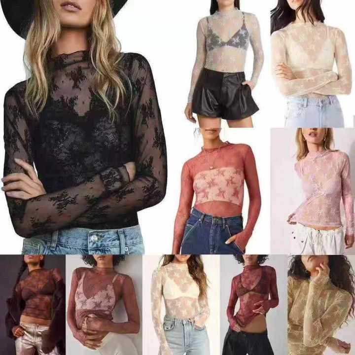 1.7清电商仓回收823件复古性感蕾丝印花显瘦打底衫系列,码数S-2XL。面料柔...
