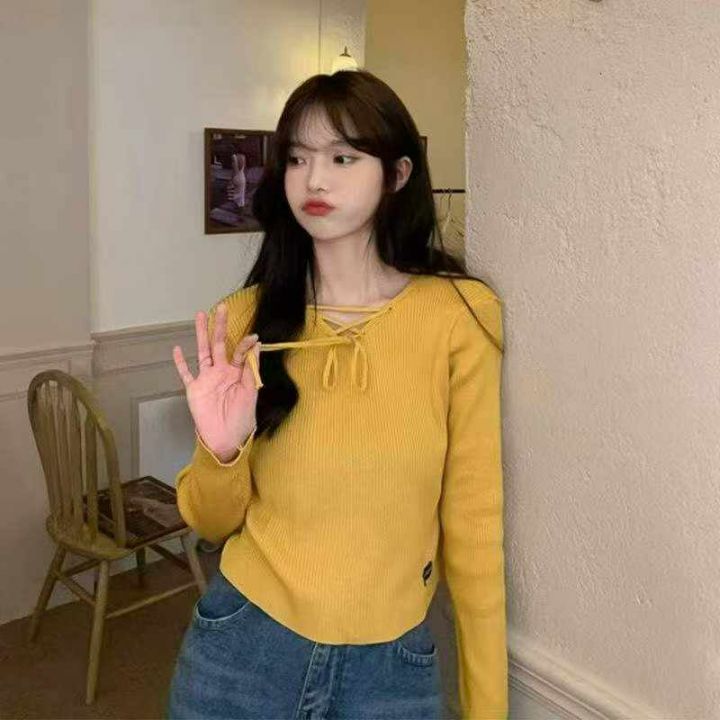 秋季新款韩版宽松设计感小众绑带长袖针织套头毛衣,独立包装,均码面料柔软舒适,100件左右,全清6.9元超低价秒杀!